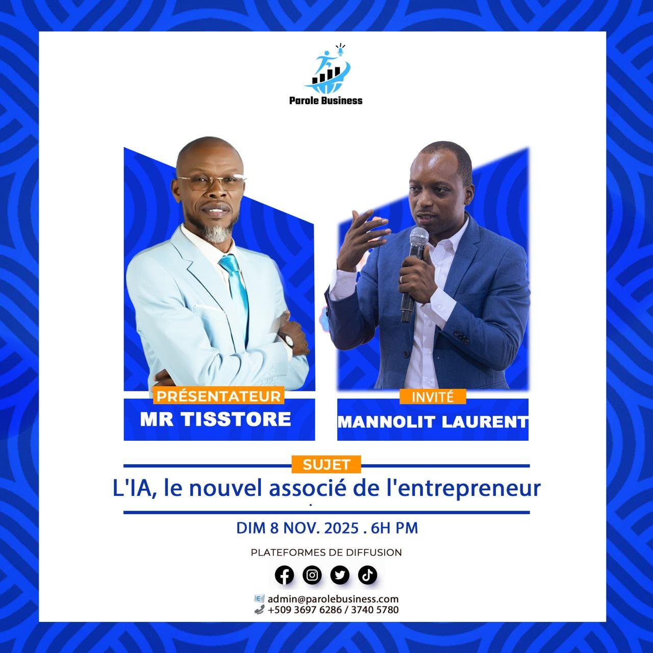 Créée par Exius Tissé, dit Mr. Tisstore, Parole Business est une émission conçue pour motiver la nouvelle génération à entreprendre. Depuis sa création en 2019, elle a évolué à travers différentes phases, passant de Pa Pe Pale De Pasew à Yon Ti Goute Pou’n Pale Biznis, avant d’adopter définitivement le nom Parole Business en 2024.